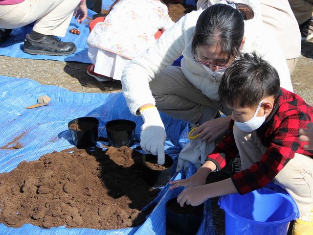 | 大塚グループの皆様と一緒に、感染拡大防止策を実施したうえで、「森づくりで広がる協働の輪in美馬FAB」を開催しました! 今年は、例年の森づくり活動とは内容を変え、苗木のもととなるドングリを拾い、専門家の指導のもとドングリの植え込みを行いました!ご自宅に持ち帰り、1年かけて苗木を大切に育て、来年度の森づくり活動の際に植樹していただく予定です♪ |